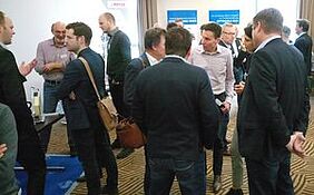 Fachbesucher informieren sich bei den Experten der Klebeindustrie über die Vorteile des Klebens