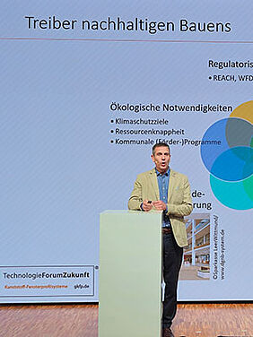 Im zweiten Vortrag stellte Frank Lange, Geschäftsführer des Verband Fenster + Fassade (VFF) und der Gütegemeinschaft Fenster, Fassaden und Haustüren e.V., das VFF Merkblatt zu Nachhaltigkeit vor, mit einem Überblick zu den wesentlichen Inhalten. Er ging auf gesetzliche Vorgaben und Nachhaltigkeitskriterien ein und präsentierte Gebäudezertifizierungssysteme sowie anerkannte Nachweise in Deutschland.