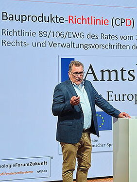Stephan Schmidt, Geschäftsführer des Fachverband Schloss- und Beschlagindustrie, legte seinen Fokus auf die Bauproduktenverordnung (BauPVO). Dabei beleuchtete er die Geschichte und die kürzlich beschlossene Revision der BauPVO sowie deren Auswirkungen auf unseren Normenbereich. Denn viele Anforderungsdetails müssen erst noch durch die (zu harmonisierenden) Produktnormen geregelt werden, und dies unter Zeitdruck. Dass Nachhaltigkeit eine hohe Relevanz bei der Abfassung der Revision hat, wird deutlich, wenn man sich die Zahl der Nennung der Begriffe vor Augen führt: „nachhaltig“ wird 64 Mal und „Umwelt“ 90 Mal benannt. Als Fazit stellte Schmidt klar, „RAL Gütezeichen müssen um Umweltaspekte ergänzt werden“.