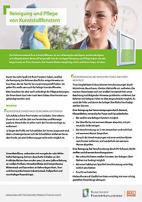 Merkblatt zur Reinigung und Pflege von Kunststofffenstern erschienen