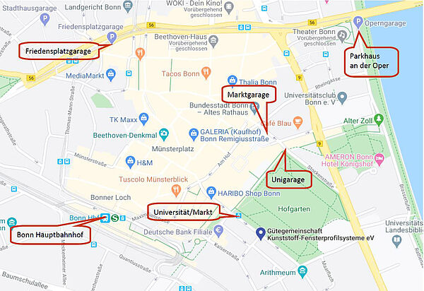 - Marktgarage: Einfahrt über Stockenstraße (53113), Stellplätze: 325